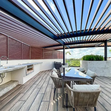 A 90 m²-es Luxury Penthouse Panoramic Views & Pool Apartman Playa del Carmen olyan turisztikai látványosságok közelében található, mint a csupán egy 5 perces sétára található Xaman Ha madárház. Az apartmanban a vendégeknek hozzáférése van a 24 órás recepcióhoz, továbbá élvezhetik a medencére néző kilátást.